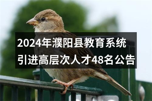 为进一步优化人才结构,加快推动教育高质量发展,根据《河南省事业单位公开招聘工作规程》(豫人社〔2015〕55号)、 《濮阳县事业单位招才引智“绿色通道”实施细则》(濮县人才办〔2022〕3号)等有关规定,经县委、县政府同意,决定面向社会为教育系统公开引进48名事业全供编制工作人员。现公告如下: