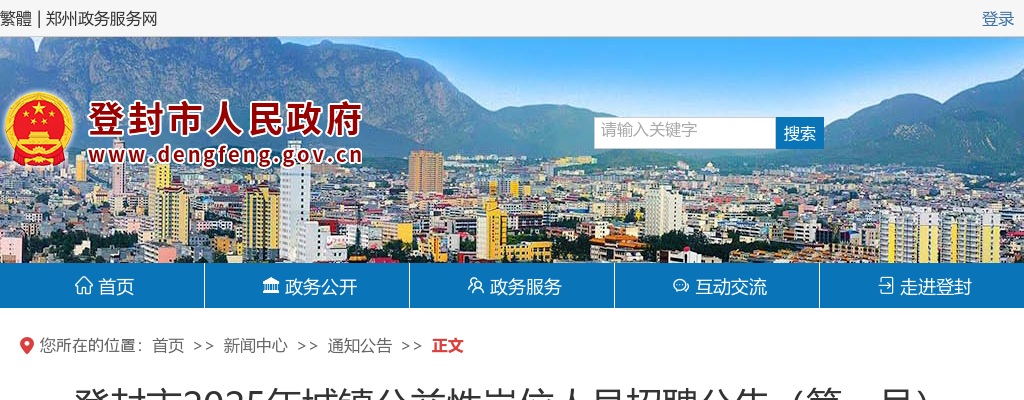 原标题:登封市2025年城镇公益性岗位人员招聘公告(第一号)