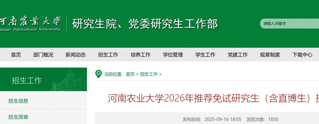 原标题:河南农业大学2026年推荐免试研究生(含直博生)接收办法